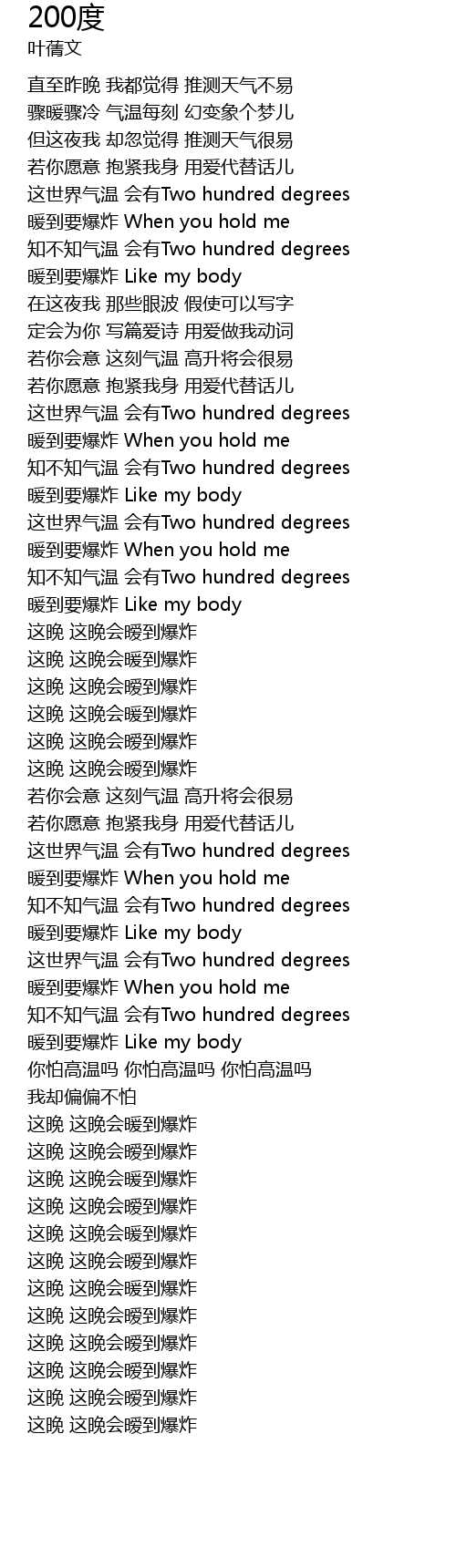 | [03:01.359] | 知不知气温 会有Two hundred degrees |