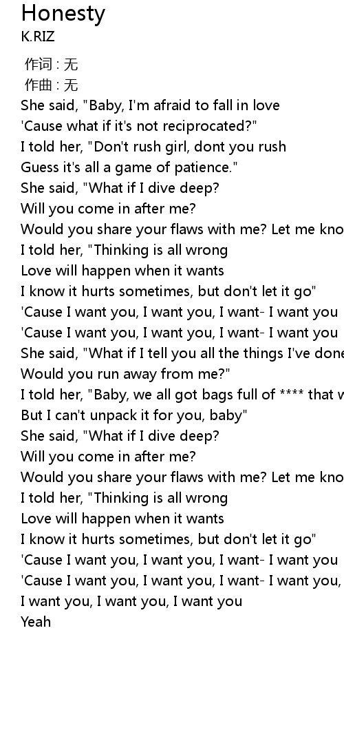 | [00:40.898] | Would you share your flaws with me? Let me know" |