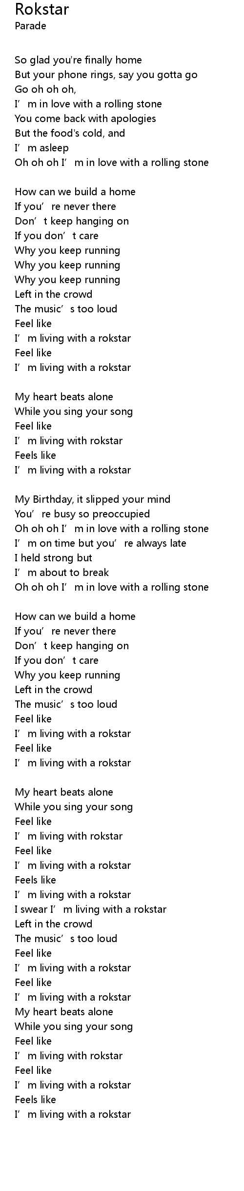 | I swear I' m living with a rokstar | |