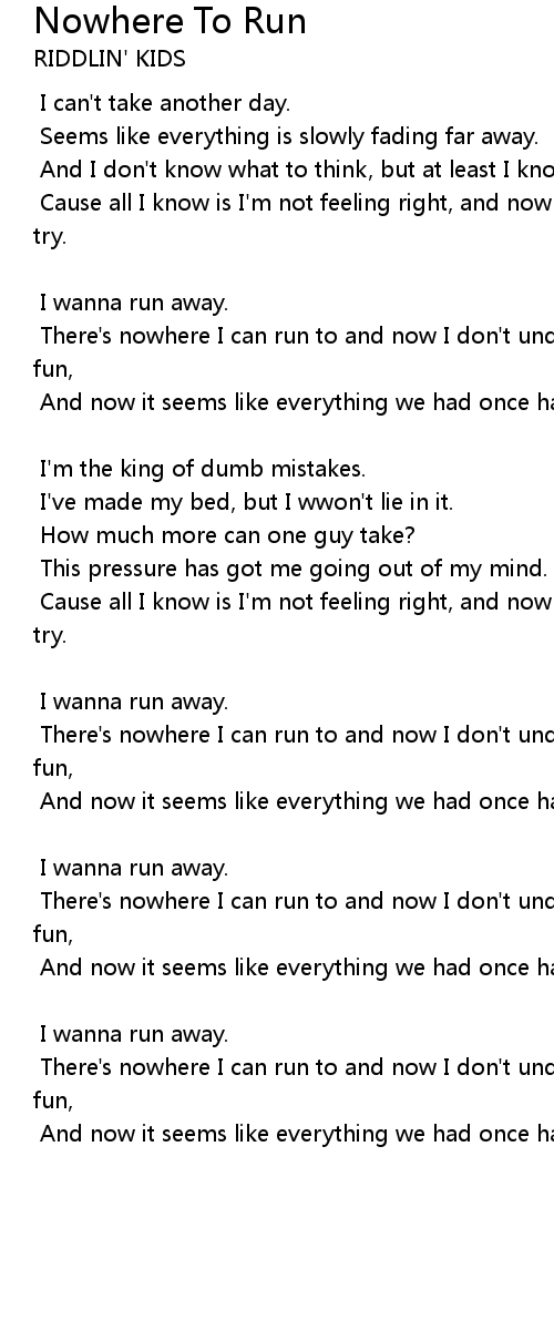 There's nowhere I can run to and now I don't understand, cause I'm not having fun, |
