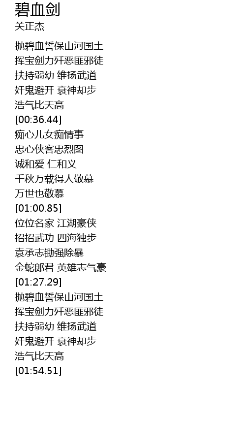 | [01:34.84] | 挥宝剑力歼恶匪邪徒 |