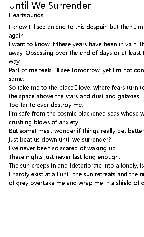 But sometimes I wonder if things really get better, or does the hand of time just beat us down until we surrender? |