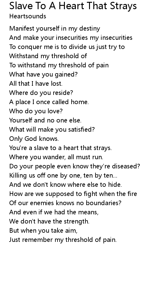 You're a slave to a heart that strays. |