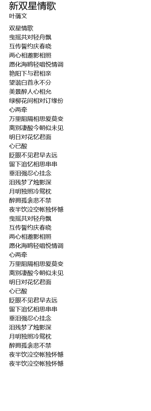 | [00:00.00] | 双星情歌 |