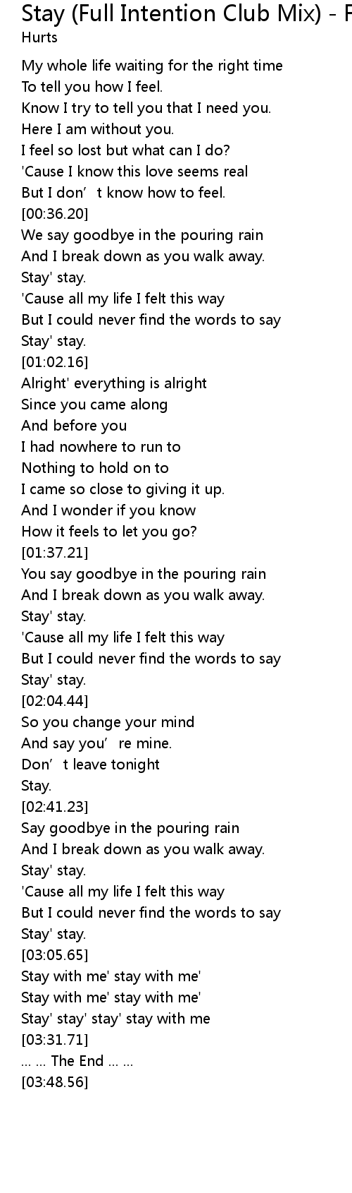 | [03:19.64] | Stay' stay' stay' stay with me |