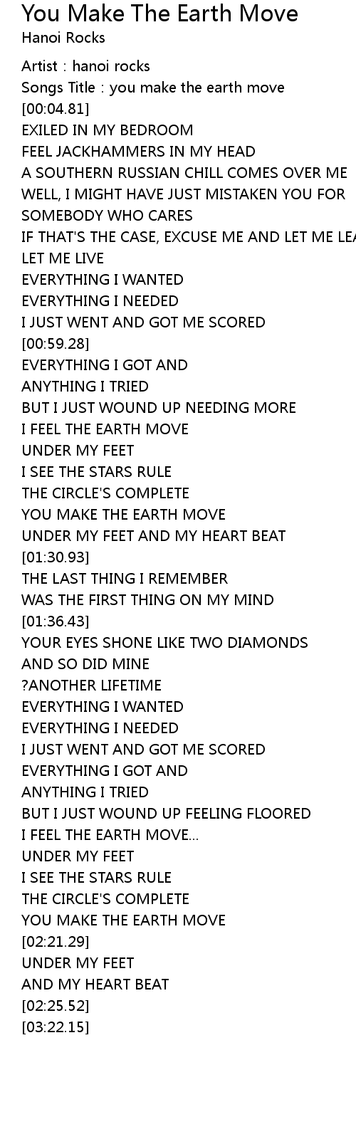 | [01:21.57] | YOU MAKE THE EARTH MOVE |
