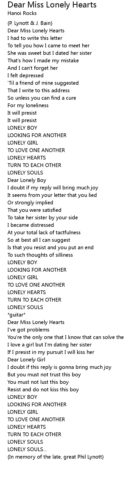 Dear Miss Lonely Hearts |