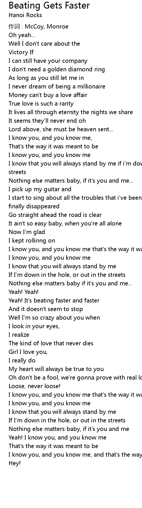 | I know that you will always stand by me if i'm down in the hole, or out in the streets | |