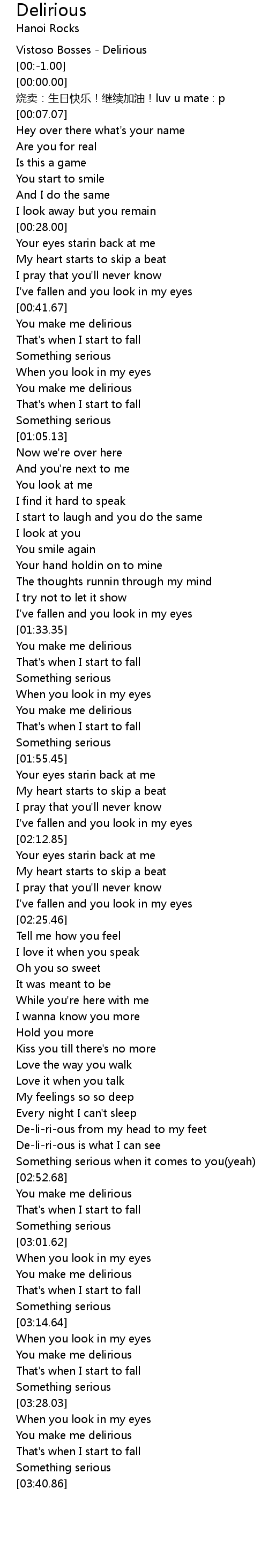 | [02:46.24] | De-li-ri-ous is what I can see |