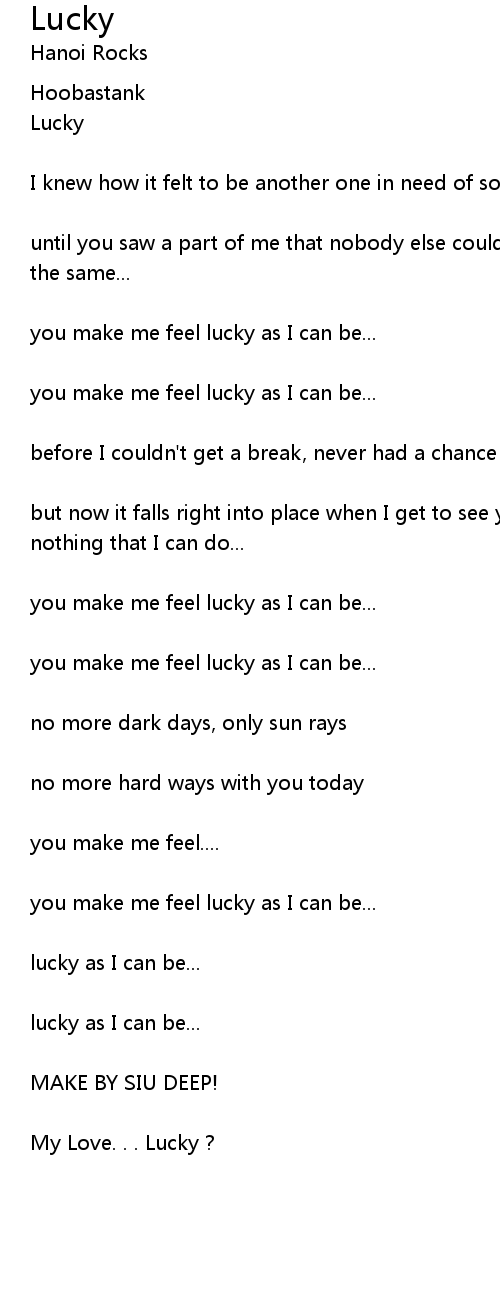 you make me feel lucky as I can be... |