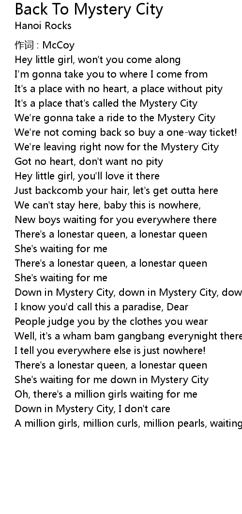 | We' re gonna take a ride to the Mystery City | |