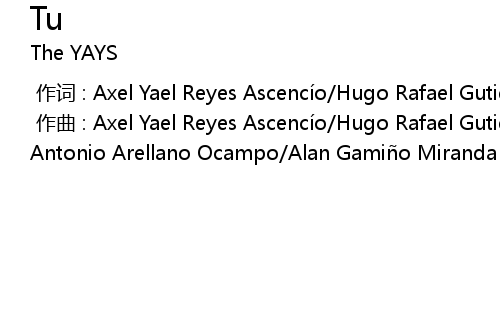 | [00:00.000] | zuò qǔ : Axel Yael Reyes Ascencí o Hugo Rafael Gutié rrez Marco Antonio Arellano Ocampo Alan Gami o Miranda |