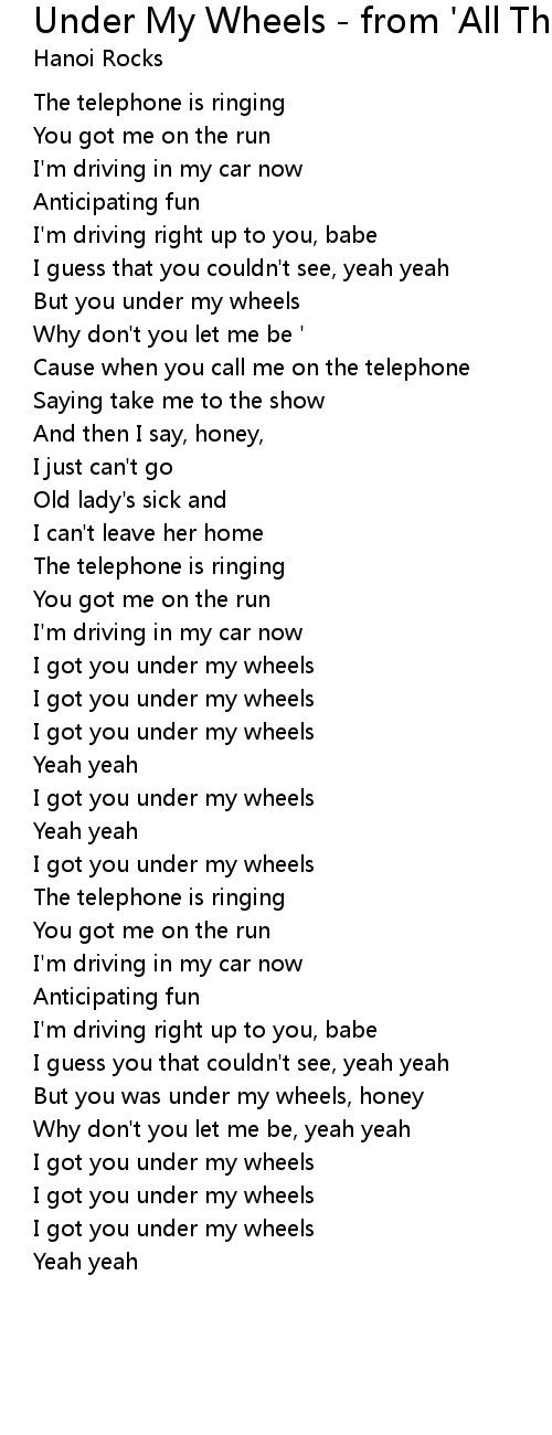 I got you under my wheels |