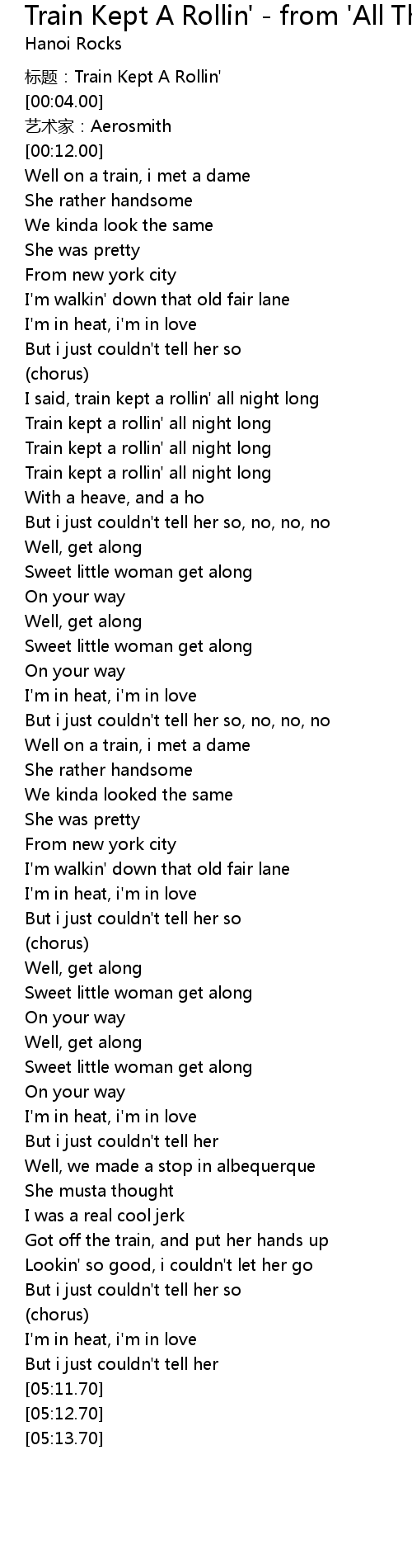 | [00:00.00] | biao ti: Train Kept A Rollin' |