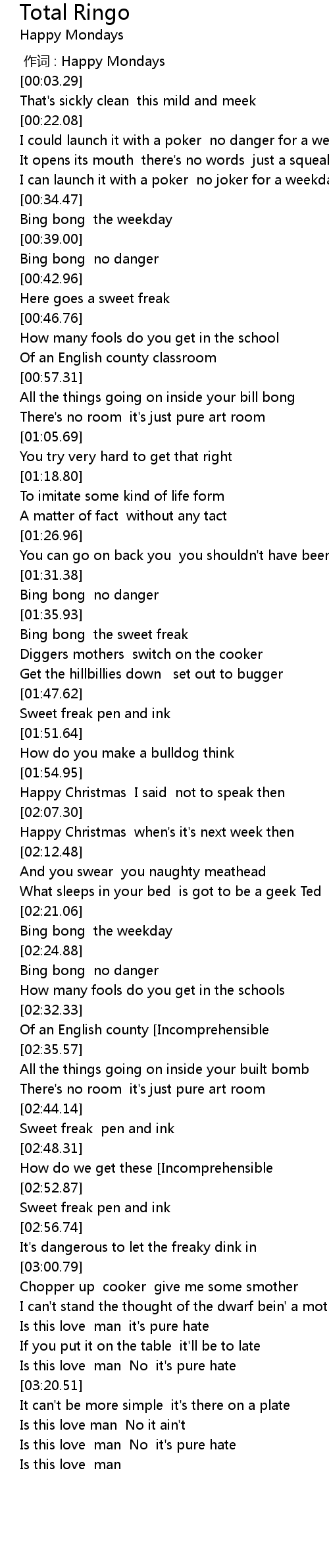 | [00:00.00] | 作词 : Happy Mondays |