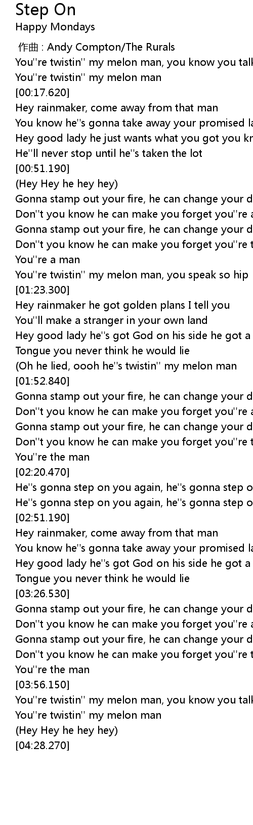 | [02:31.270] | He'' s gonna step on you again, he'' s gonna step on you |