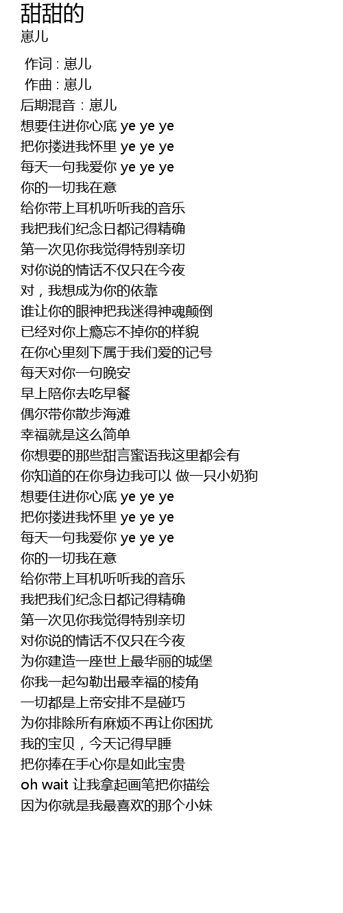 | [00:30.96] | 每天一句我爱你 ye ye ye |