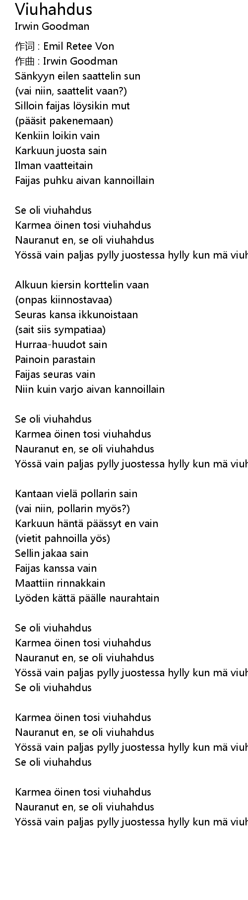 | Yössä vain paljas pylly juostessa hylly kun mä viuhahdin | |