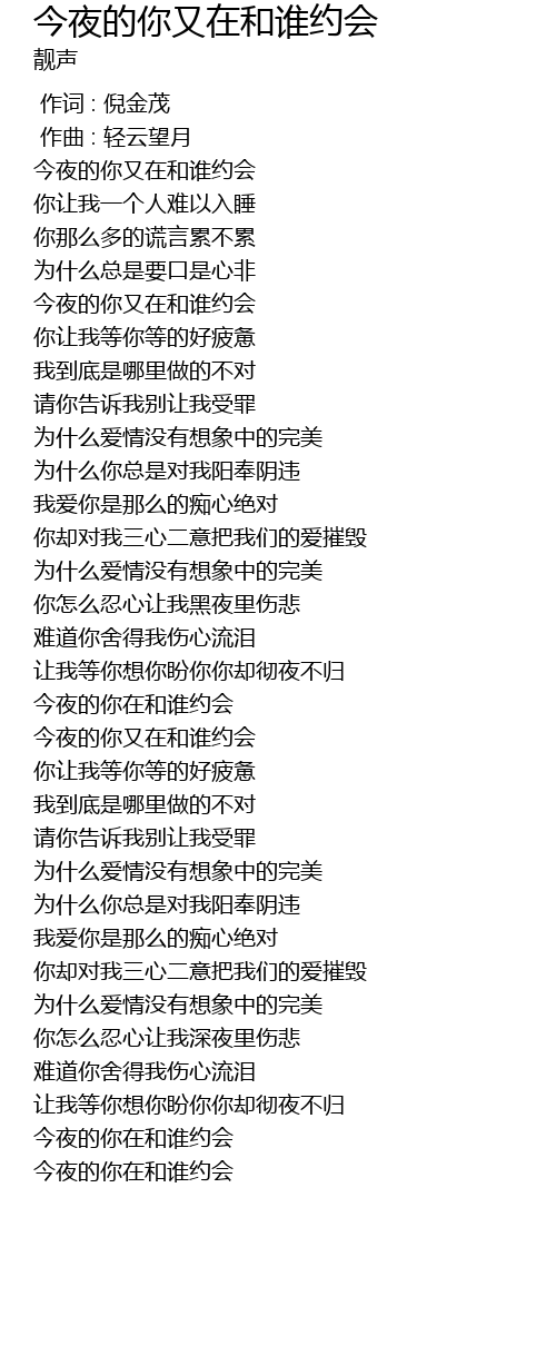 | [00:32.179] | 今夜的你又在和谁约会 |