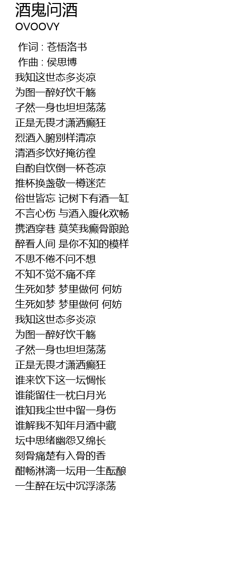 | [01:42.73] | 不言心伤 与酒入腹化欢畅 |