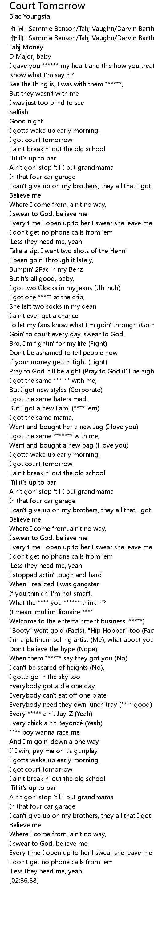 | [02:16.34] | I got court tomorrow |