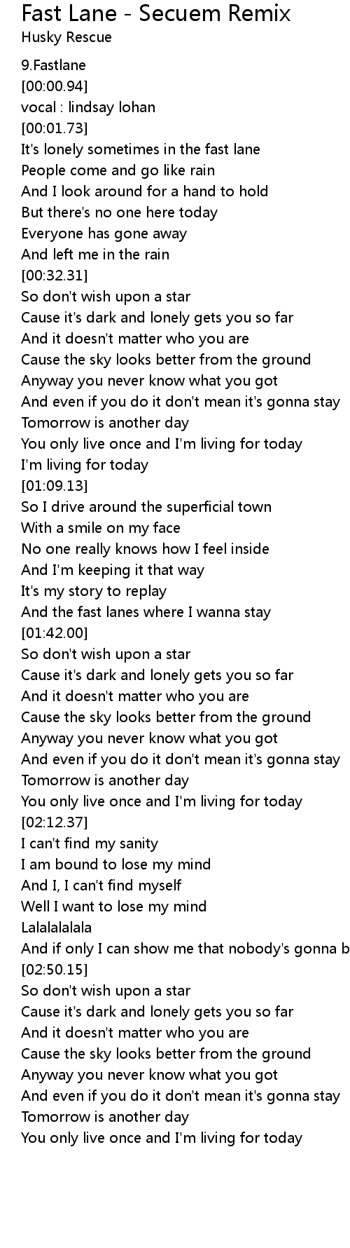 Fast Lane - Secuem Remix Lyrics