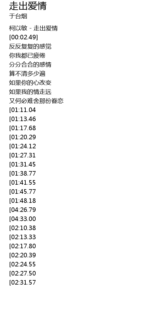 | [00:00.00] | 柯以敏 - 走出爱情 |