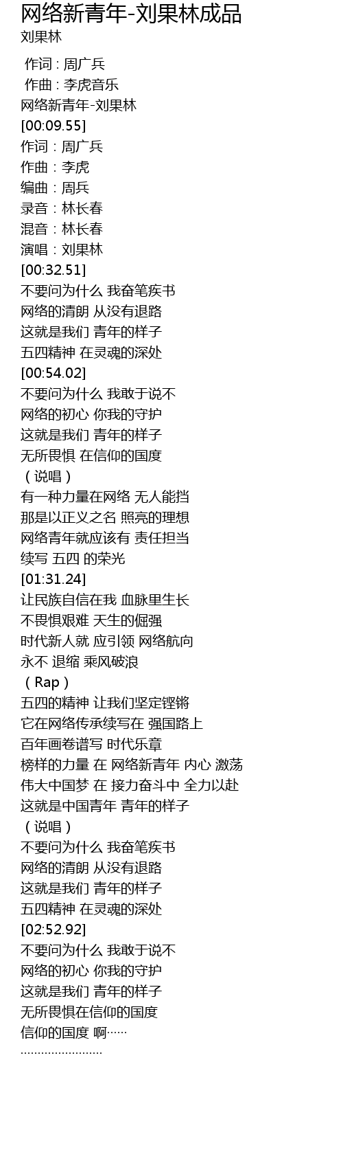 | [00:01.770] | wang luo xin qing nian liu guo lin |