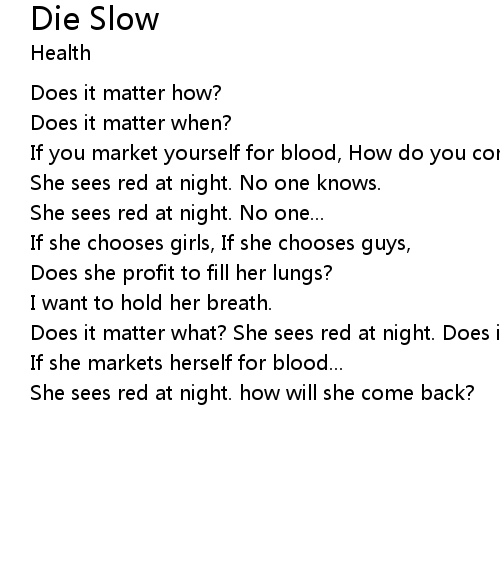 Does it matter what? She sees red at night. Does it matter where? No one knows. If she markets herself for blood...