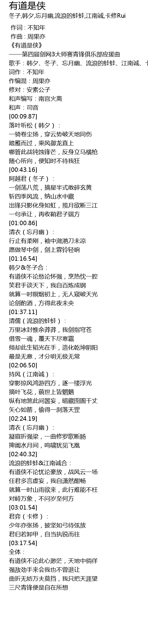 | [00:00.00] | 《有道是侠》 |