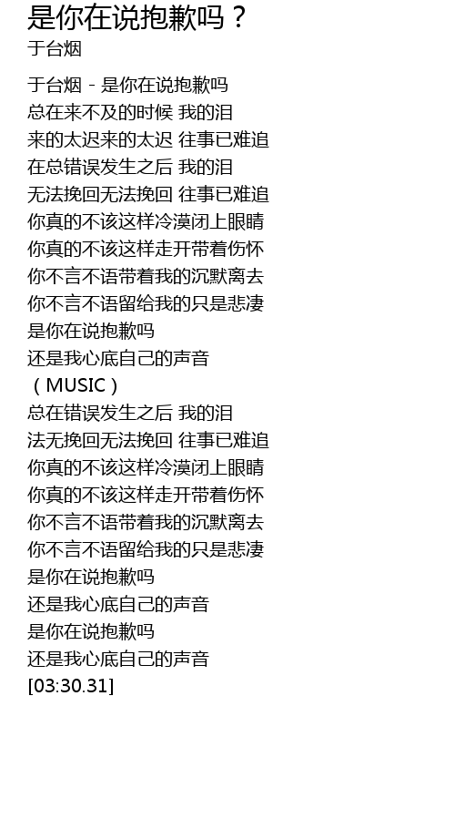[00:02.80] 于台烟 - 是你在说抱歉吗