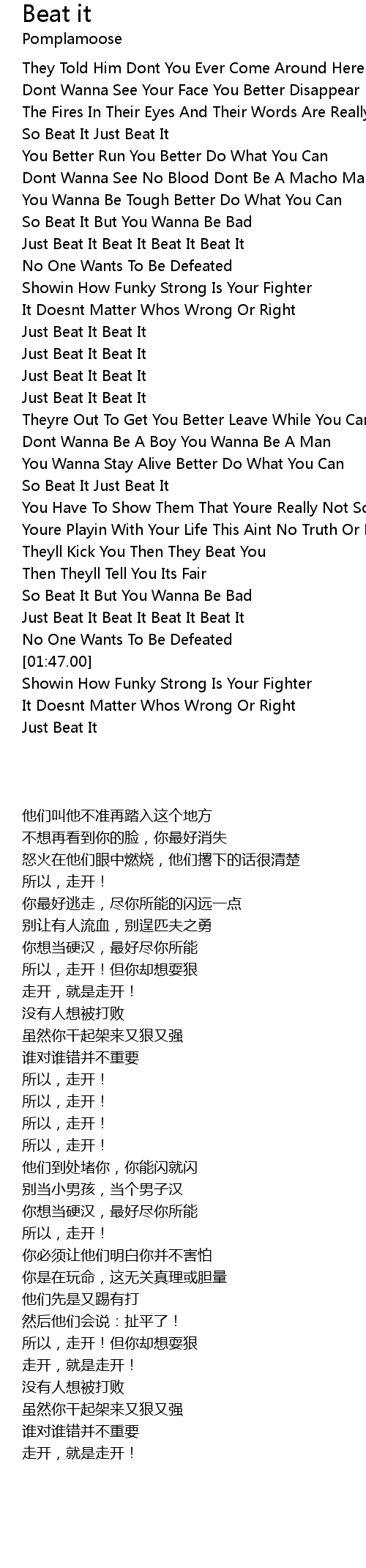 [01:41.39] Just Beat It Beat It Beat It Beat It