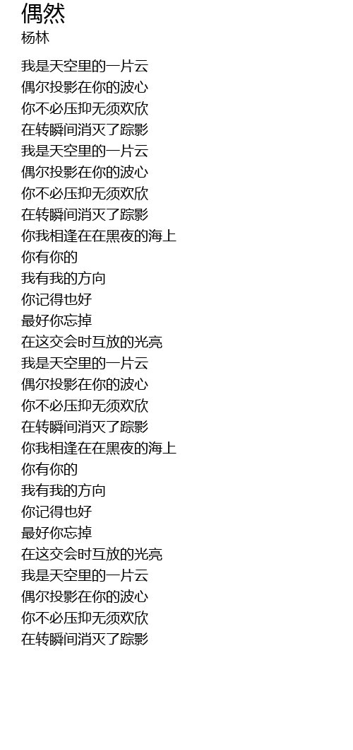 | [00:55.789] | wǒ shì tiān kōng lǐ de yī piàn yún |