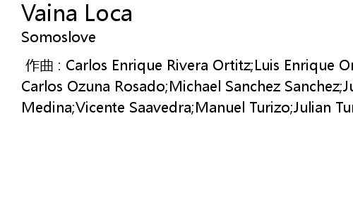 | [00:00.000] | 作曲 : Carlos Enrique Rivera Ortitz;Luis Enrique Ortiz Rivera;Juan Carlos Ozuna Rosado;Michael Sanchez Sanchez;Juan G Rivera Vazquez;Juan Diego Medina;Vicente Saavedra;Manuel Turizo;Julian Turizo;Julian Maya |