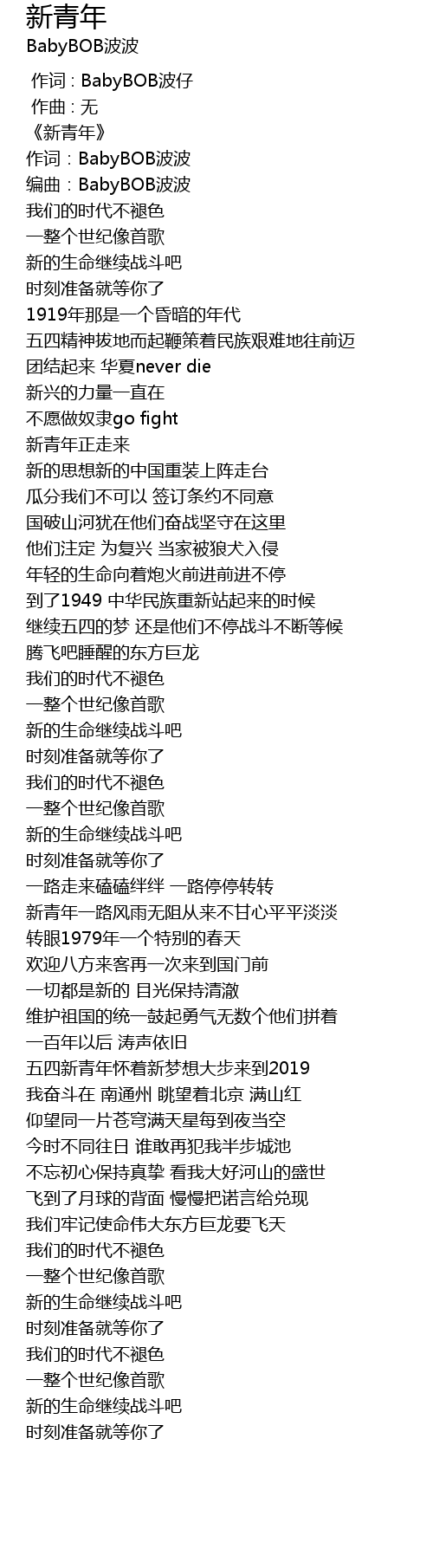 | [01:51.86] | 五四新青年怀着新梦想大步来到2019 |