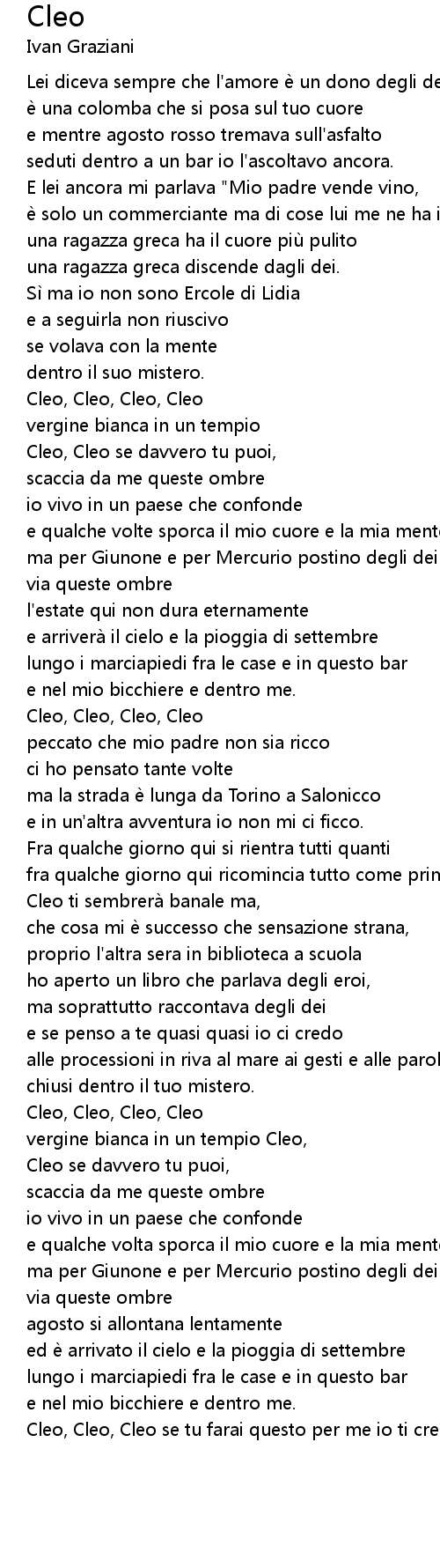 | Cleo, Cleo, Cleo se tu farai questo per me io ti credero. |