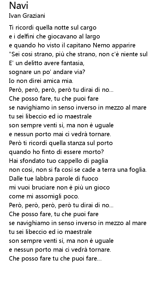 | " Sei cosi strano, piu che strano, non c'e niente sul mare" | |