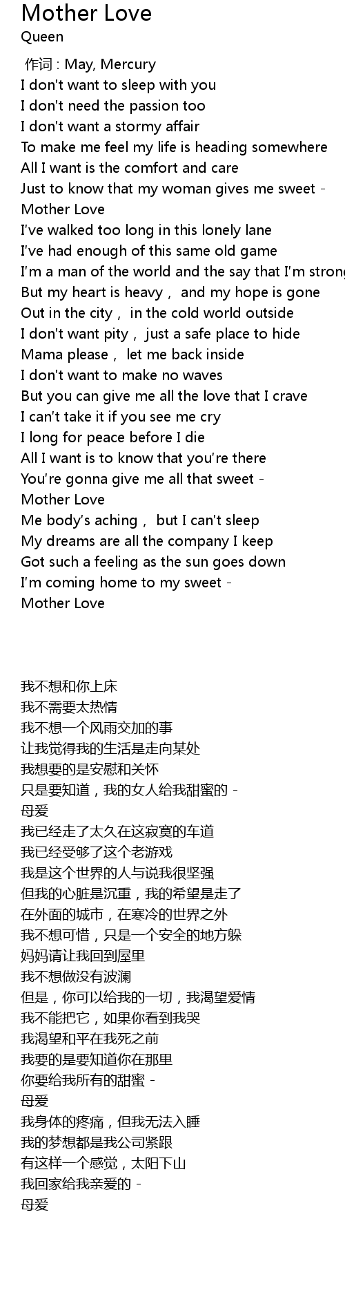 | [01:18.530] | Mother Love |