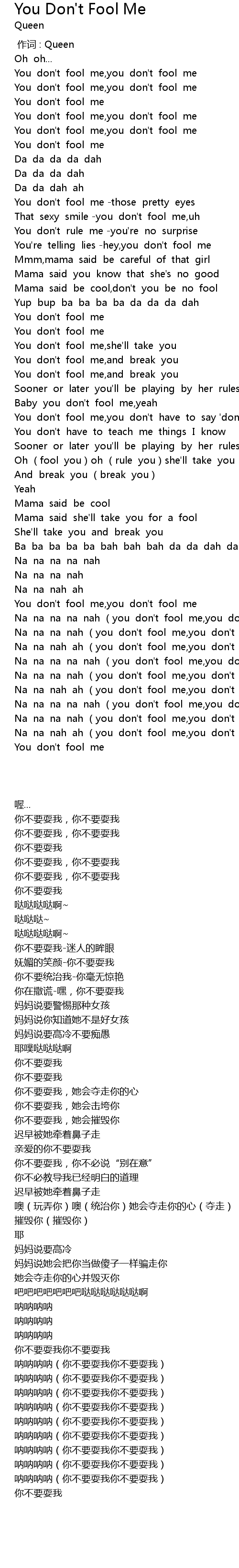 | [05:14.217] | Na na nah ah (you don't fool me,you don't fool me) |