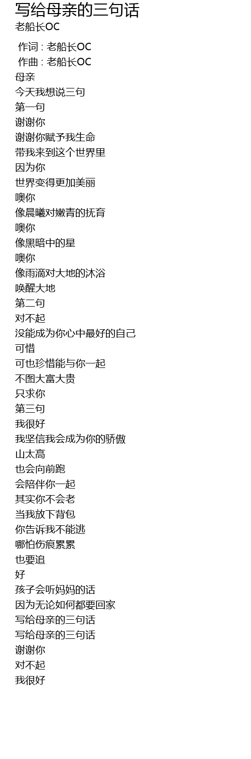 | [03:00.798] | 写给母亲的三句话 |