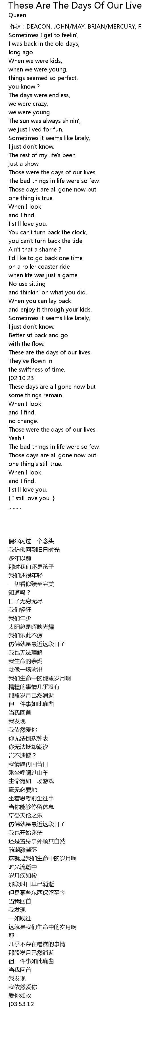 | [00:00.00] | 作词 : DEACON, JOHN/MAY, BRIAN/MERCURY, FREDDIE/TAYLOR, ROGER |