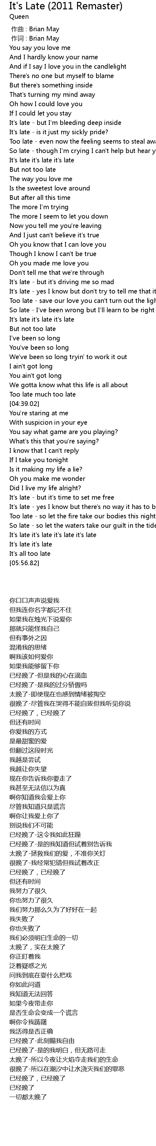 | [05:39.11] | It' s late it' s late it' s late it' s late |