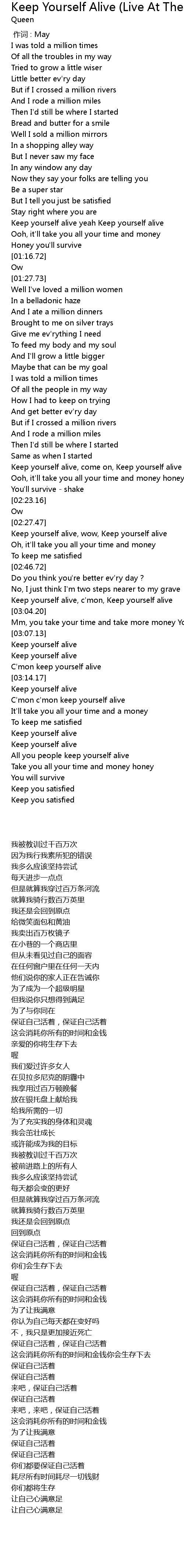 | [02:58.39] | Keep yourself alive, c'mon, Keep yourself alive |