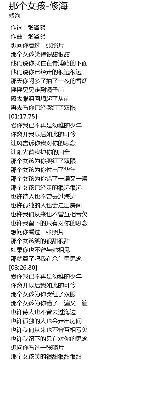 | [03:07.21] | 那个女孩笑的很甜很甜 |
