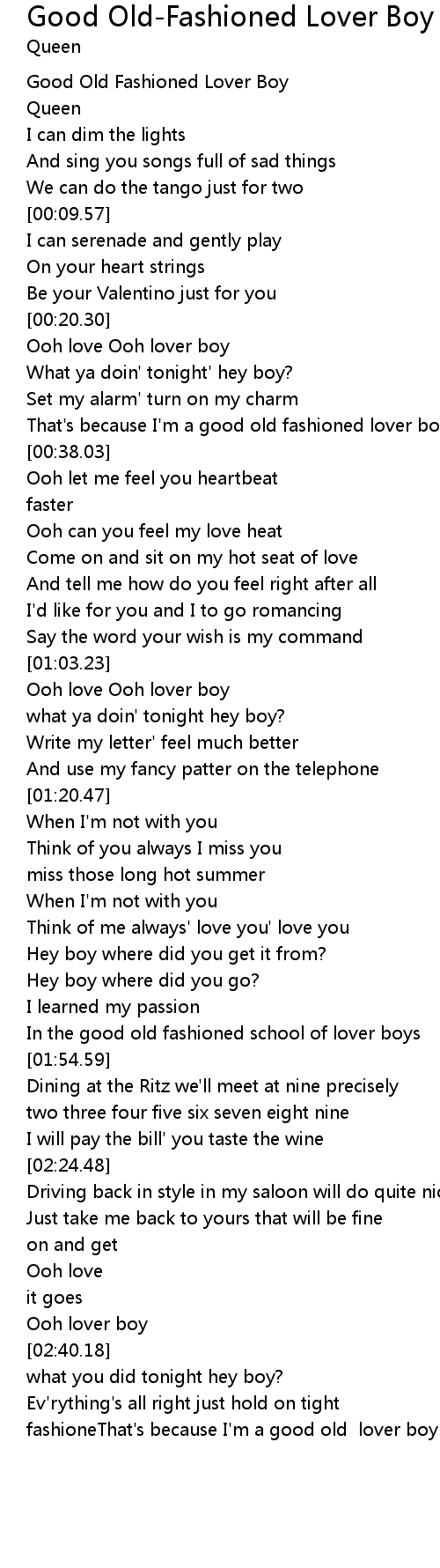 Good Old-Fashioned Lover Boy (Top Of The Pops, July 1977) Lyrics
