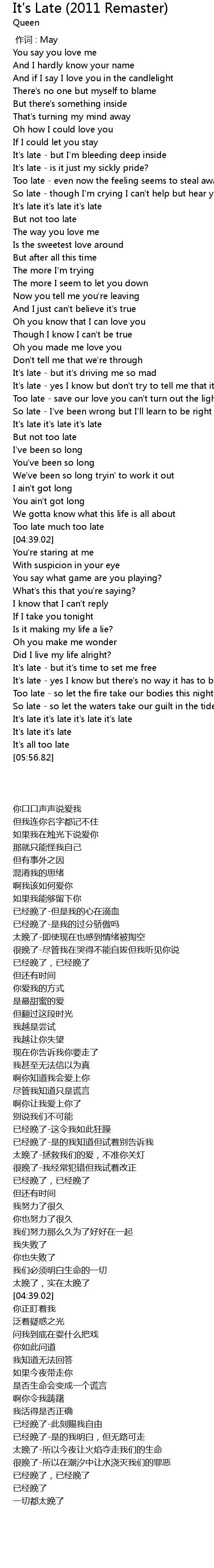 | [05:39.11] | It' s late it' s late it' s late it' s late |