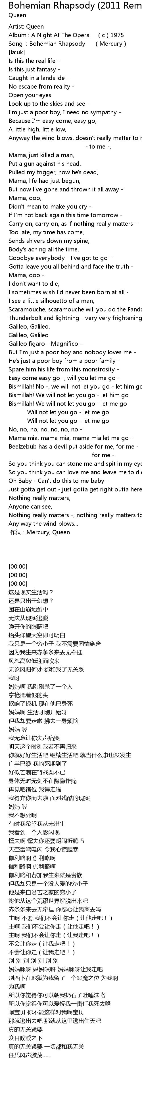 | [00:00] | Song : Bohemian Rhapsody Mercury |