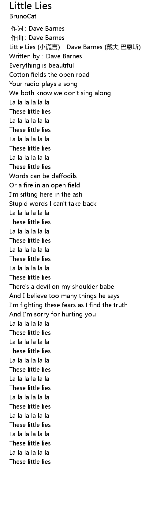 | [00:02.268] | Little Lies xiao huang yan Dave Barnes dai fu ba en si |