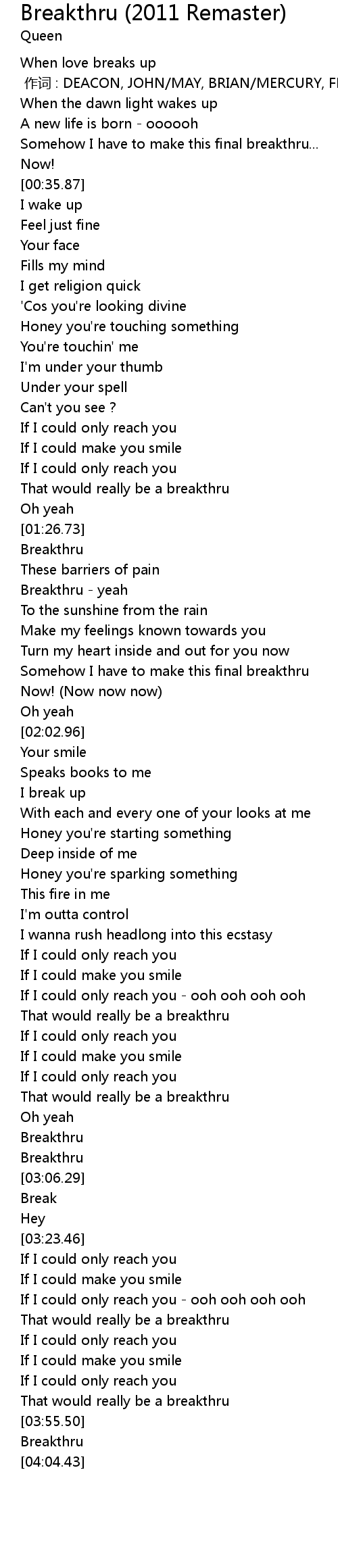 | [01:34.09] | Breakthru - yeah |