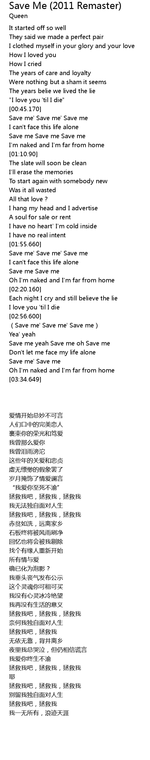 | [03:11.489] | Save me yeah Save me oh Save me |